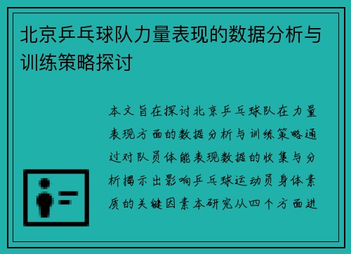 北京乒乓球队力量表现的数据分析与训练策略探讨