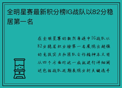 全明星赛最新积分榜IG战队以82分稳居第一名